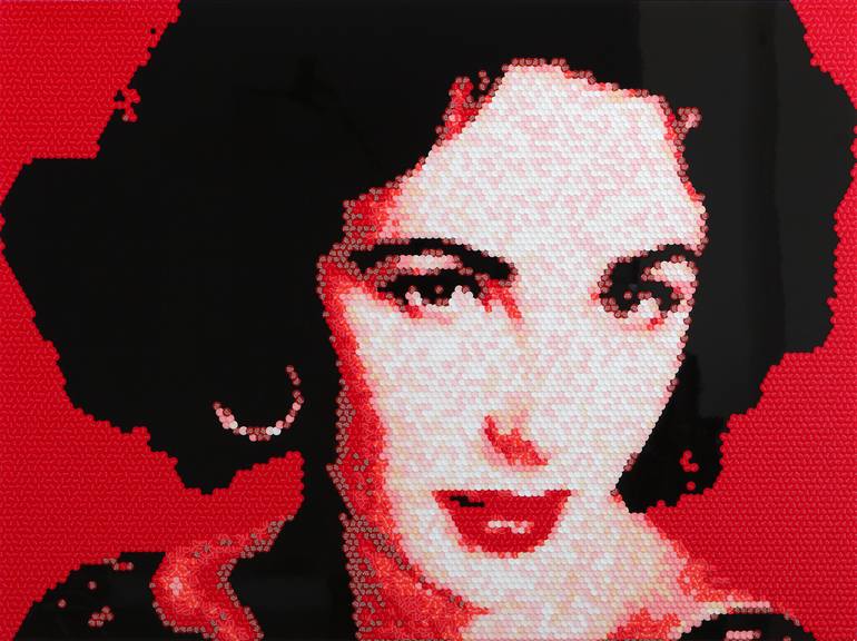 re. Elizabeth Taylor(Riz Taylor), 76.2X101.6(cm), stickers, urethane resin, acrylic board, aluminium profile, 2016. Stickers are the basic stuff of my work. First I design various types of stickers of my own and then have them printed. I put the printed stickers together on an acrylic panel to pro...