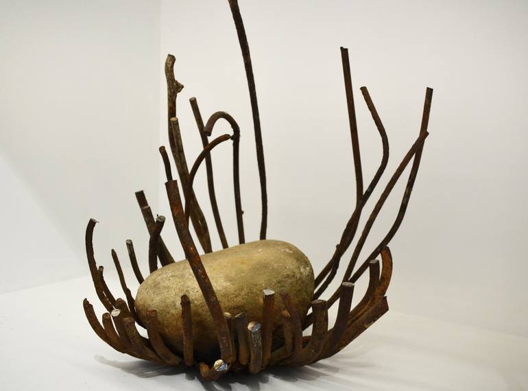 next object come from combination assembling natural stone with metal fingers.... the idea of surrealistic dream and object coming from future...