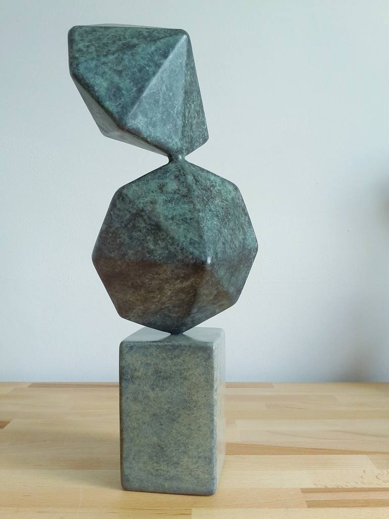 Unique, non-editioned abstracted geometric bronze sculpture mounted on bronze base.