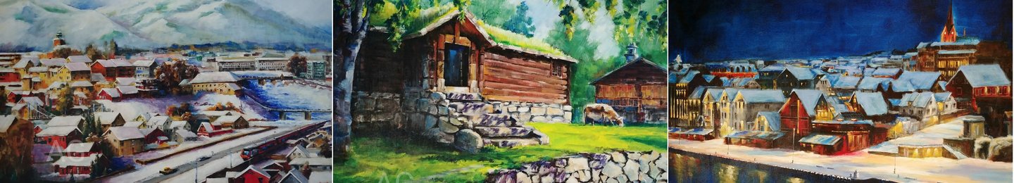Some paintings available at Dahl rammeservice (gallery), Norway.