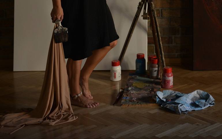 Among artists whose work she respects and finds it similar to her own sensibility is the Italian representative of the Art Informel Alberto Burri. Una communicates with her audience through the abstract form of Expressionism and Art Informel.