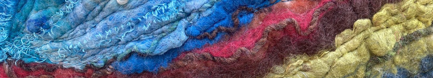Claire likes to connect 2 worlds, encapsulating the outside world and bringing it into the inside one with her original and colourful works. She likes to think that her art work inspires and enriches our environments. She achieves this by creating organic and colourful works painting with wool and silk fibres.