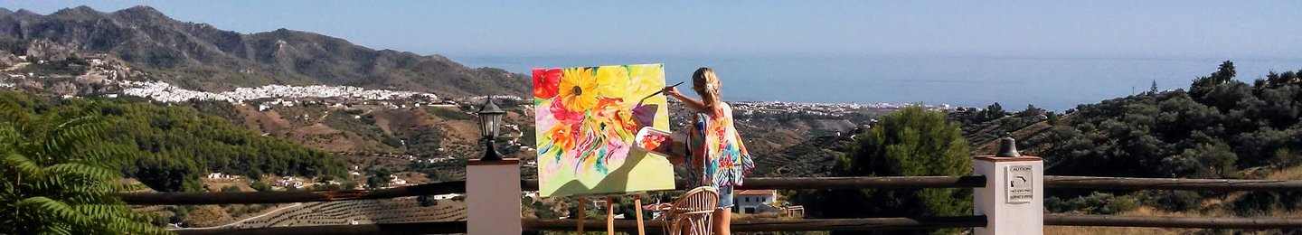 Pieces range from reflections of Frigiliana to abstract paintings, Egyptian themed panels, spiritual and Eastern influenced works, inspirational coastal / water themed pieces and my vibrant flower paintings. I continue to explore different mediums for my original work.