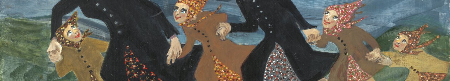 The jaunty, naive style is intended to convey her early life as remembered ‘through the eyes of a child’, with the various scenes charmingly recalling life as it was lived during this period, 1930-44. Each painting is accompanied by commentary by the artist on its context and subjects, creating a uniquely personal and insightful record of the bygone traditions and community activity of rural Wales.