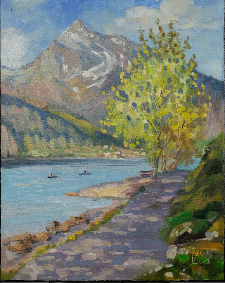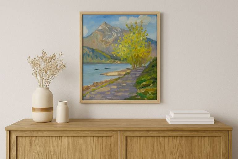 n this work, painted from life during a plein air session in April 2025, I captured a moment of silence and tranquility in the heart of the Swiss Alps. A light palette dominated by blue, green, and ochre hues conveys the purity of the air, the freshness of a spring day, and the clarity of the Walens...