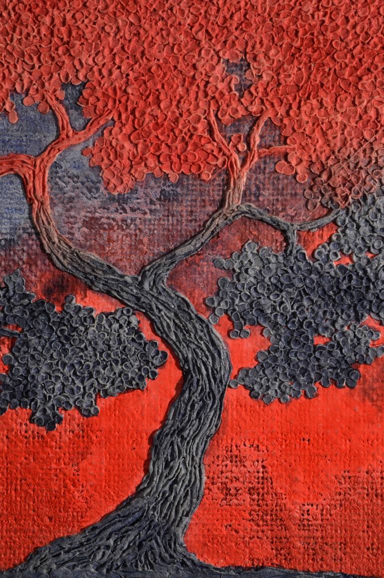 Gian Luigi Delpin is an italian painter, born in Tourin in 1962, lives and works in Asti. He works as a graphic designer for service companies and in the fashion industry. He began his activity as a painter in 1992. He collaborates extensively with paint manifactures in the luxury decoration sector as a creative consultant, working in sinergy with the laboratory technicians he acquires skills on the properties of the materials that he transfers to his painting by creating unique and personal technique, enhancing the materiality of the plaster he uses, creating bas-relief effects in compositions that work on thicknesses and contrasts ( matt / glossy, smooth / rough ). He builds the frames of the artworks by hand and mainly uses jute canvas as a support, treated is a very particular way. The art of Gian Luigi Delpin is inspired by his training as a graphic designer, by the language of visual comunication: trees, animals and oversized object are contaminated by pop and graphic suggestions, by the use of written as a symbol and form, in the creation of mental landscape that become almost abstract subject. My signature is Mac.