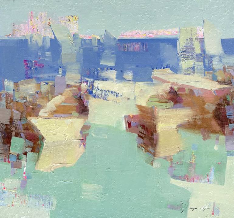 Artist: Vahe Yeremyan Work: Original Oil Painting, Handmade Artwork, One of a Kind Medium: Oil on Canvas Year: 2023 Style: Impressionism, Subject: Rowboats, Size: 29" x 30.5" x 2'' inch, (74x77x3 cm), Framed, Ready to Hang. Yeremyan is an American Armenian who now lives and creates in Califo...