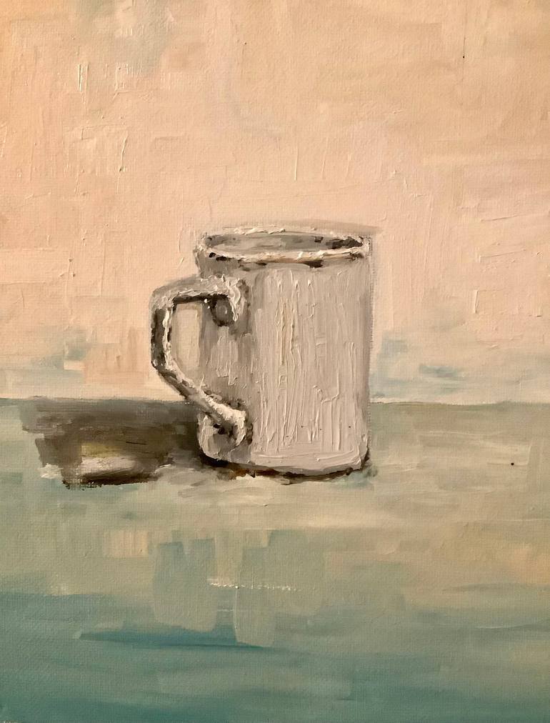 The cup … this is one of my favorite cups that I drink my coffee from when I am working in my studio , full to the brim with great coffee . I painted the cup when I wasn’t having a great time with another painting I was working on , it was sitting on my desk empty but still so beautiful. I used oil ...