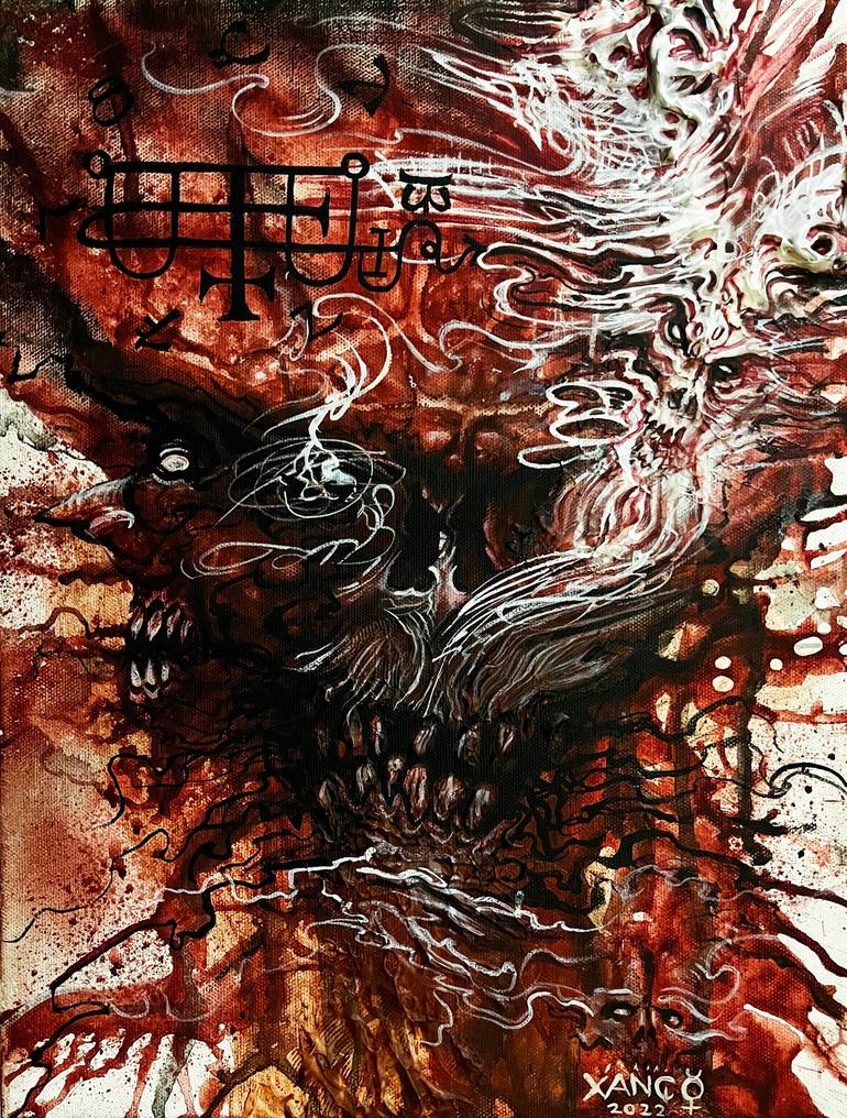 Outcast. Rebel. Hellraiser. Beautiful. Abstract. These are just a few of the adjectives and thoughts that invigorate the design of drawing that encapsulates Xango’s mind. He began his love affair with art as a child when his mind wandered within the throes of comics, cartoons, video games and music that in turn painted the corners of his mind with wonder and delight. As Xango grew into adulthood, so did the metamorphosis of drawing in scrapbooks, a kaleidoscope of brightly colored canvases ran up and down the walls of his home and soon he was meticulously inking naked skin with images that could easily break the ice between two strangers who don’t even speak the same language. These days Xango is focused on learning new art frontiers. Virtual reality design, 3D printing and continuing to hone his skills as a writer. There are stories to be told. Comic books to be printed. Dimensions to conquer. Art that feels the need to speak. This underworld has teeth. To be seen in the obscene. In the past. In a dream. The footsteps of our past, in the digital and everything in between. Xango continues to expand his portfolio and we are all better off for it.