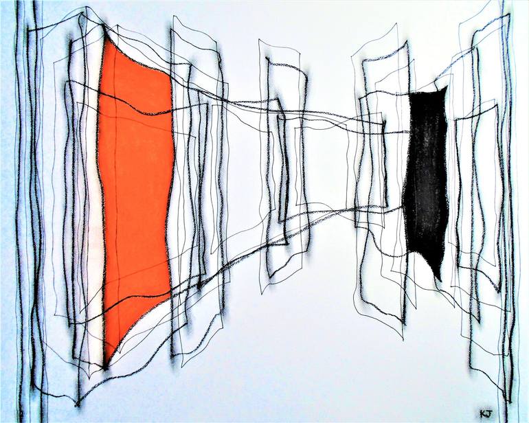 Bold minimalist composition inspired by urban line; strong colours and line gesture influence the piece. Fixed with professional fixative and rolled in acid-free tissue paper.