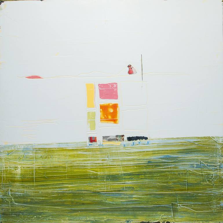A work on a wood panel, consisting of several layers of acrylic, sanded to create the shabby edges + corners.