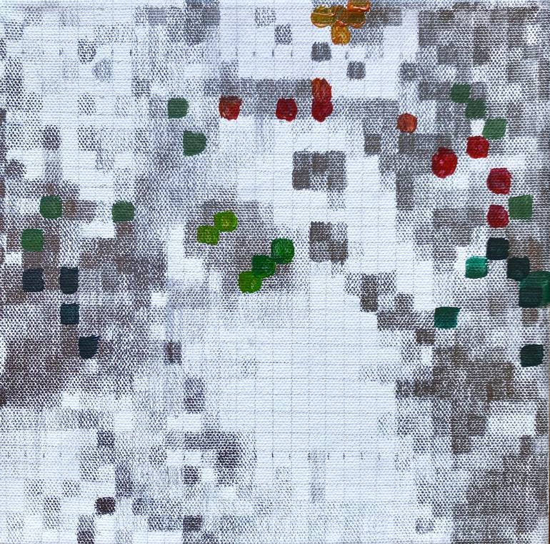 This is a painting/drawing on canvas of a pixelated image of my friend and I in front of an inflatable snowman. I’m interested in the removal of memory as it relates to the digital or photographed world vs physical experience.