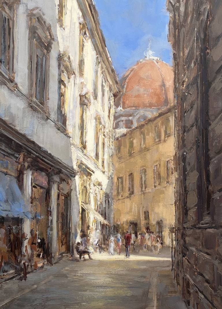 My Florence trip back in July was so inspiring for me that I have continued to create paintings of the city. This is a cafe where I sat one morning in the sun drinking my espresso.