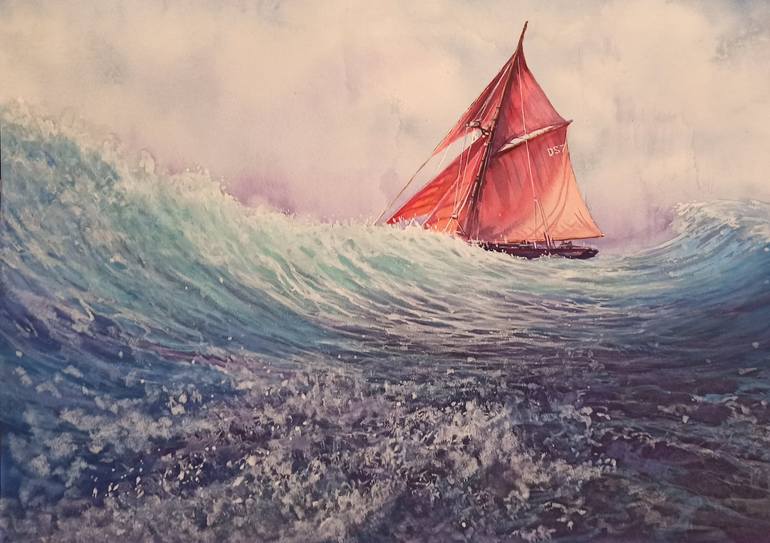 Watercolor paper, 100% cotton, density 300 gm Like many people I am attracted by the beauty, power and danger of the sea, the elegance of sailing yachts and the courage of their crews.