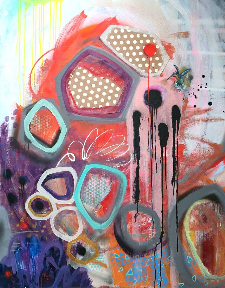 Sweet Spot is a whimsical abstraction with hummingbird that plays with the concept of scale.