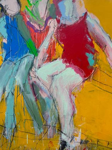 Her paintings are infused with the dynamic energy of light, evoking feelings of freedom, serenity, and inner harmony. Each piece is built through multiple layers of oil and spray paint on canvas, creating depth and movement.