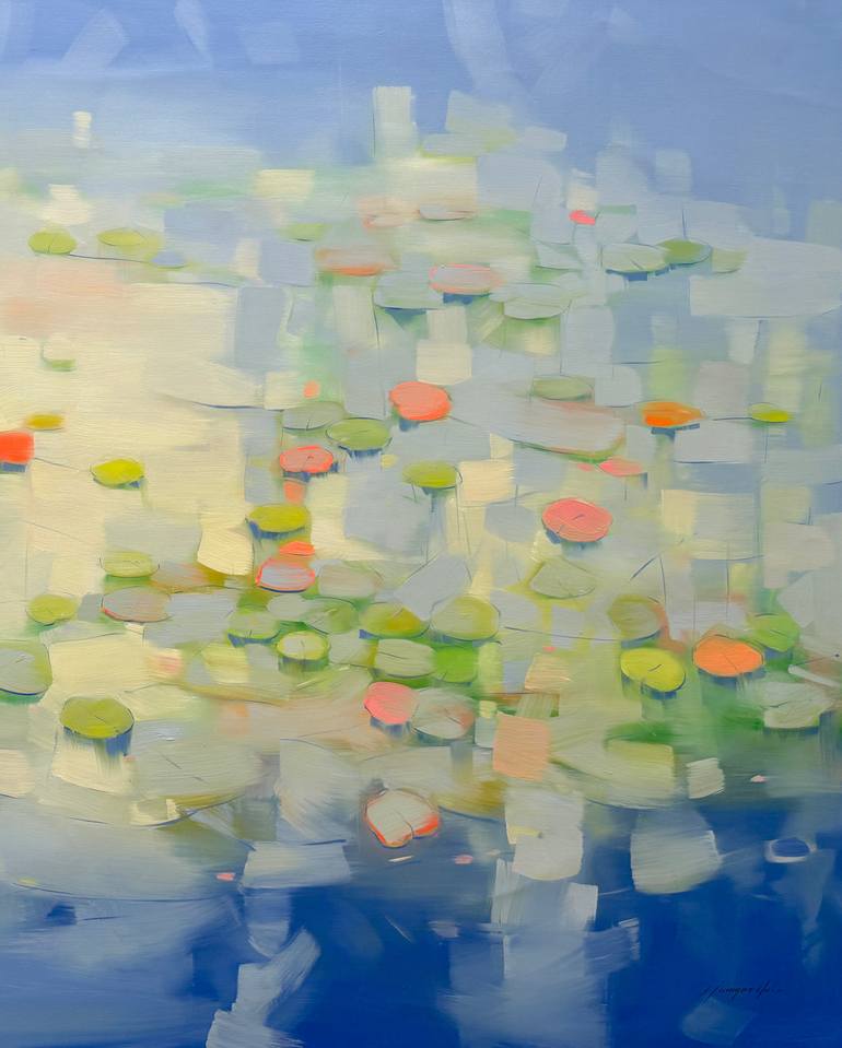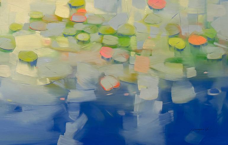Artist: Vahe Yeremyan Work: Original Oil Painting, Handmade Artwork, One of a Kind Medium: Oil on Linen Year: 2024 Style: Impressionism, Title: Waterlilies Size: 44" x 64" x 1'' inch, (112x163x2 cm), Unframed, Stretched on Wooden Bar, Gallery Wrapped, Ready to Hang. Yeremyan is an American A...