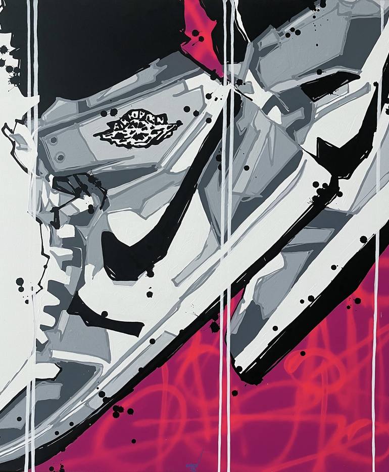 The artworks in this Limited Edition Series are visually striking and capture the iconic design of the Air Jordan 1 shoes in a bold and energetic way. The use of acrylic and spray paint adds depth and texture to the pieces, creating a sense of movement and dynamism that reflects the athleticism and ...