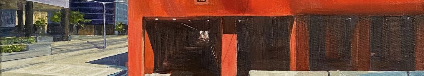 My oil paintings are observations of subtle, intricate details of daily life that often go unnoticed. Stylistically, they are straightforward and meticulous. While I have lived in different cities on three continents, I have always admired architecture everywhere and how it forms the ambiance of a place. I am fascinated by the unwritten story of a building and the geometric forms in urban landscapes and public spaces with brilliant sunlight and shadow. Additionally, my engineering background nurtured my vision of discovering clear lines and compelling proportions in a building. So, to explore this, I have been making oil paintings of buildings and interiors where life goes on.