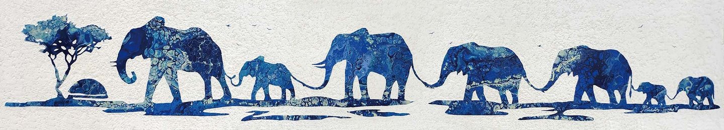 Elephants are social animals that live together in a maternal society. The head of the elephant group is a woman, and she faithfully plays a role of a warm leader who paves the way for the forest by sharing the wisdom gained through many years of experience and years to all. It resembles a strong female figure in human society who proudly goes on a difficult path. The elephant, the theme of the work, projects the artist's dream to resemble this strong female figure. The work depicts the determination to boldly and confidently pursue the artist's path with people who walk the artist's path like an elephant walking in the Namib Desert in search of an oasis.