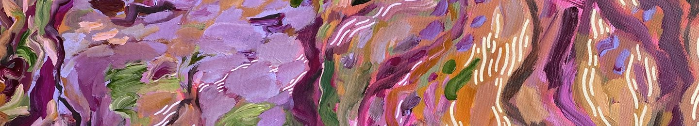 Jessie Beard is an emerging abstract expressionist and abstract landscape painter. Her work observes nature, with an accentuation on colour and movement. The process begins on location, immersing into her surroundings, taking photos and storing what the senses are experiencing. Jessie uses abstraction to depict and reconnect with the place and the associated fleeting memories and emotions. Numerous layers and patterns are used to portray the depth, intricacies and stories within nature and present an appreciation of the natural world in euphoric interpretations.