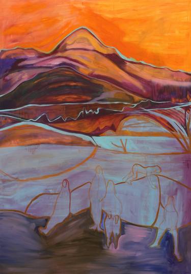 The making of my paintings happens much like the narratives, I tend to see them as one and the same. Adding and taking away, the process is much like a journey in itself. I like to think of my paintings as adventures, in process and narrative. The brush marks and figures feel entwined; both exploring the landscape. There is a sense of spirit, guidance and sometimes isolation.