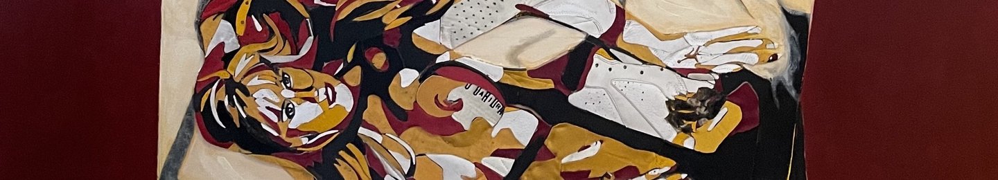 My work is an examination of the role of consumption within the collective conscious, and how this varies between class structures. The work transcends class identification and is equally relatable to a kid in the projects as it is to a wealthy adult. Most of the pieces are paintings with the focal points collaged out of deconstructed sneakers, or other materials relevant in pop culture. However, it also bleeds out into conceptual sculptures. All of the work is tied together by the formation of identity and how our belongings contribute to our sense of self.