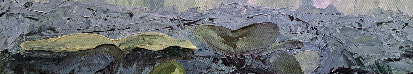 I use oil paint in a variety of ways, from thinning it down and pouring, to using a palette knife. I love to create textures, be they physical, or the appearance of texture. I enjoy the flexibility of painting on paper or canvas and sometimes introducing an element of mixed media.
