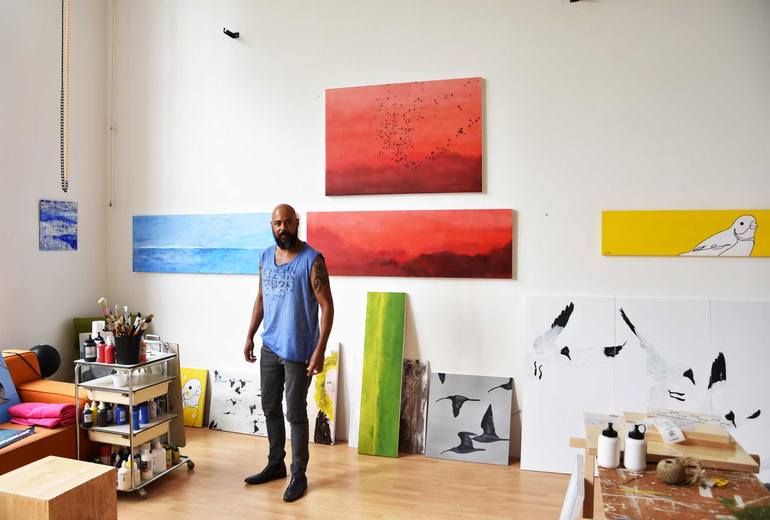 To be able to give respect to his skills as a painter, he devoted himself to the arts. Both ways of expression, music, and art, enhance each other. Inspired by stillness, spaciousness, and dynamics, his choice to paint birds and seascapes, as a transmitter to the openness, came naturally.