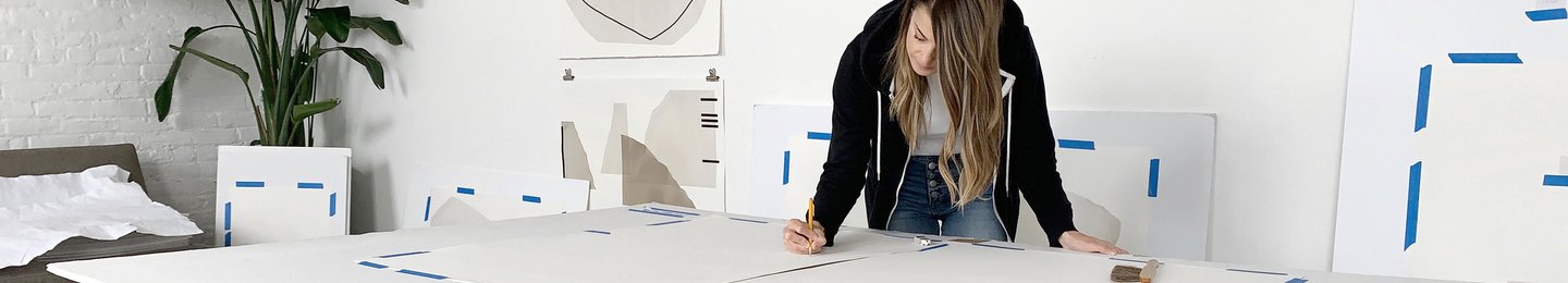Kim Knoll is an abstract painter living and working in Chicago. She draws inspiration from being in a big city and her travels in nature. Switching between acrylics, watercolors, ink, graphite, spray paint and charcoal, she recalls memories, shapes, perspectives, and movements to inform and guide each painting. She spent many years developing her unique style of art, symbolism of shapes and marks, and technique for stretching paper. Her paintings are an expression of what she sees and feels, and an exploration of the contrasts between perfectionism and humanism, as well as structure and spontaneity that coexist within.