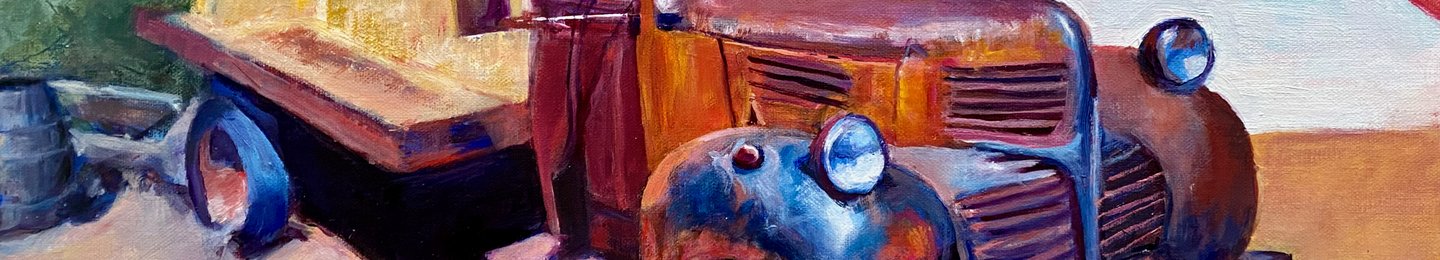 I'm an artist working from Menlo Park, California. I paint mostly in oils, on canvas, paper and metal. I am currently working on a PASTRY SERIES WHERE MY CANVASES ARE OLD COOKIE SHEETS with years of kitchen history baked right in, and used trays. I also paint old neglected trucks, boats and machinery--I AM DRAWN TO THEIR BEAUTY AND ACHING NOSTALGIA. I work in plein air doing landscapes of the enchanting and varied vistas in Northern California. I do the occasional portrait. My favorite artistic pastime is sketching people.