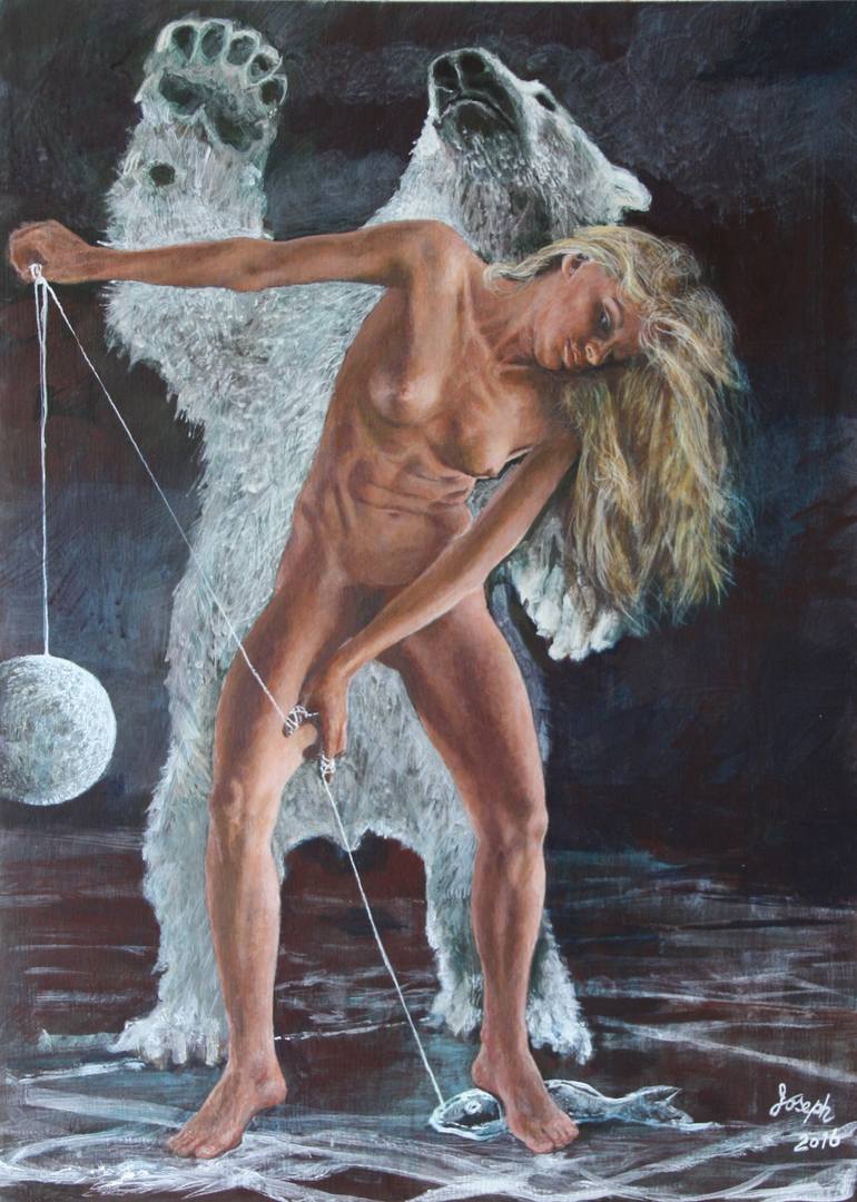 Of course to say that I love women and the grace of the female figure should, I hope, be evident but there is more, I also am, as an artist, absolutely fascinated by anatomy and the challenges that it brings. In these paintings my goal is to bring these two passions together in a graceful and playful image. If you look carefully you will see how I pay attention to details and skin texture. It is time consuming, done with love and is worth the price.