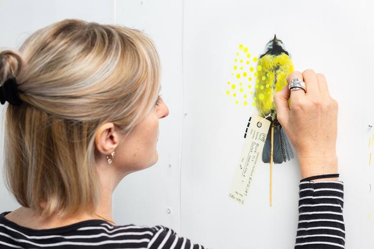 Her most recent work in collaboration with Leicester Museum & Art Gallery explores creative methods for cataloguing British bird skin specimens. Her solo exhibition ‘Colour Coded Birds’, saw a diverse collection of bird specimens grouped together by colour alongside contemporary artworks. The bird skin collection inspired Lucy to create new 2D and 3D artworks that use intense colour combinations. Artworks included within the exhibition combine photography of the bird skins on display with Lucy’s signature instinctive mark marking. As well as colourful abstract wooden sculptures, holding bird eggs from the museum’s collection, which interpret ornithologic...