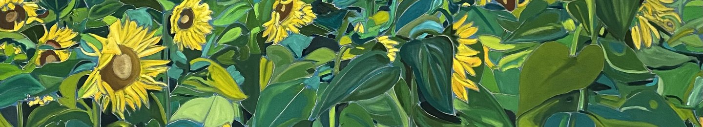 Maggie Clifford-Bandstra (she/her) was born in Michigan in 1970. Clifford-Bandstra currently lives and works in West Michigan. Her paintings are nature abstracted. The human connection to nature inspires her paintings and pottery. She extrapolates the simple forms and colors in plant life and the landscape. Her work uses an exaggerated scale, movement, and patterns. She encourages us to notice the beauty in the world around us. Her work is in many public and private collections. Bandstra also works in clay, creating functional and non-functional pieces. Her ceramic works and paintings encourage us to notice the beauty in the world around us. The unifying undercurrent in Maggie’s work plays with ideas and concepts surrounding nature, healing, serendipity, stories of love, and the human connection.