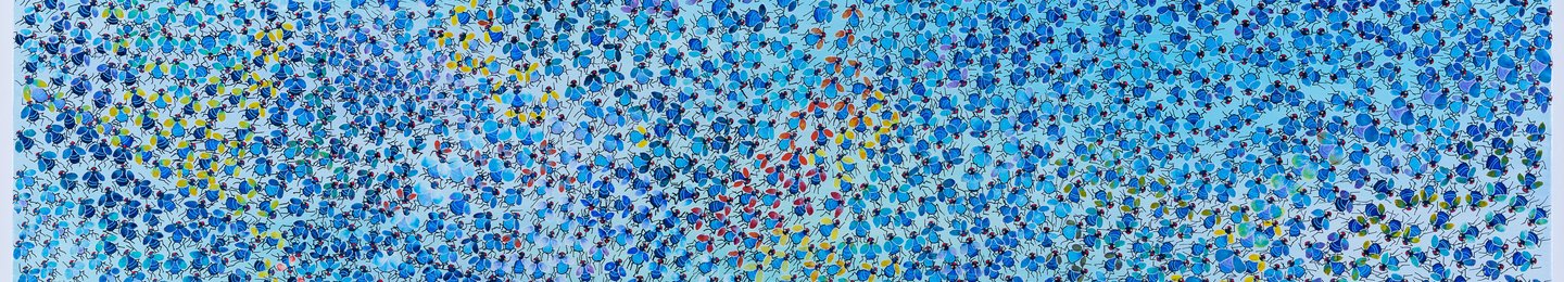 Marius Konings (The Hague 1952) was trained as performing professional musician (violoncello) and worked as music teacher and coach. He paints in a naive stile groups and collections of people and animals. He is fascinated by the behavior and psychology of groups.