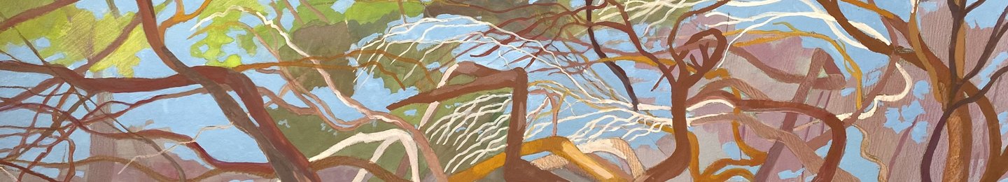 She creates instinctively, in a vital impulse. His first drawings are executed on the "motif": instantaneous retranscription of a landscape, a look, a silhouette, placed on a sketchbook. Her paintings are narrative. They speak of what touches her and question nature, with softness and poetry. Shapes, curves, movements, her subjects are treated in a raw and “original” way. She works the layers, the materials. She makes free use of color.