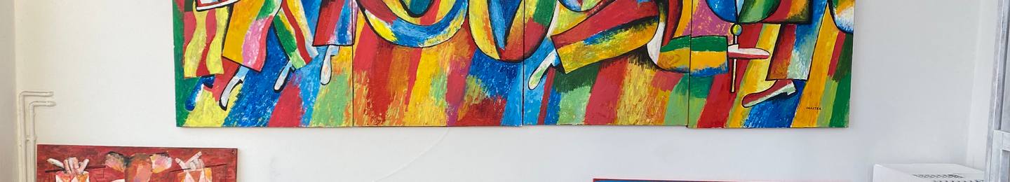 Orester's oeuvre is characterized by vibrant colors and lively compositions that often depict schematic faces and figures, conveying individuality through expressive postures. His work captures abstract concepts such as music, dance, and emotions, transforming them into visual narratives that resonate with viewers.