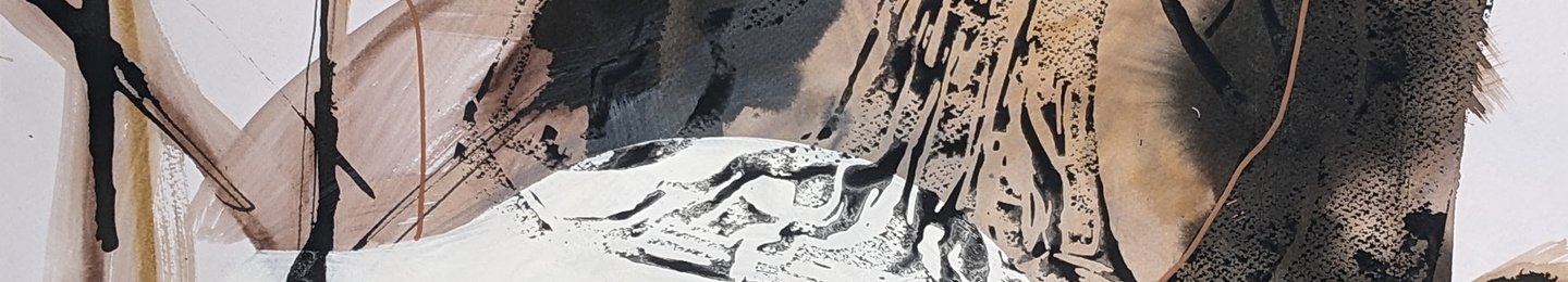 On paper, she explores how representational shapes and abstract space balances within a composition containing remnants of prints, calligraphy, and a sense of distance. In these "vaporscapes", she uses colour and motifs to explore seasonality.