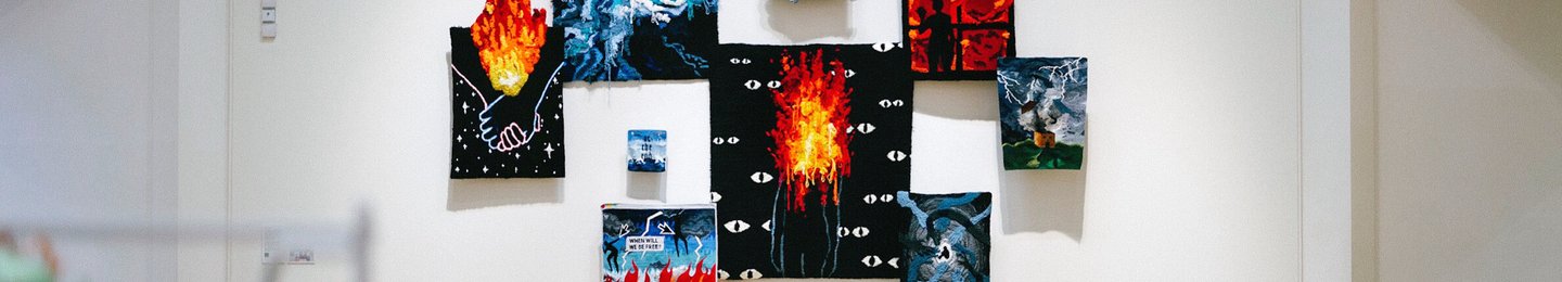 Molly Kent is a textile artist who represents mental and physical health notions through mediums such as rug tufting and weaving. They portray contemporary existence regarding social media and internet living and how this affects our perception of self. This stems from their personal experiences of their mental health condition CPTSD but also reflects on broader anxieties and fears that have come to their attention due to the COVID-19 pandemic.