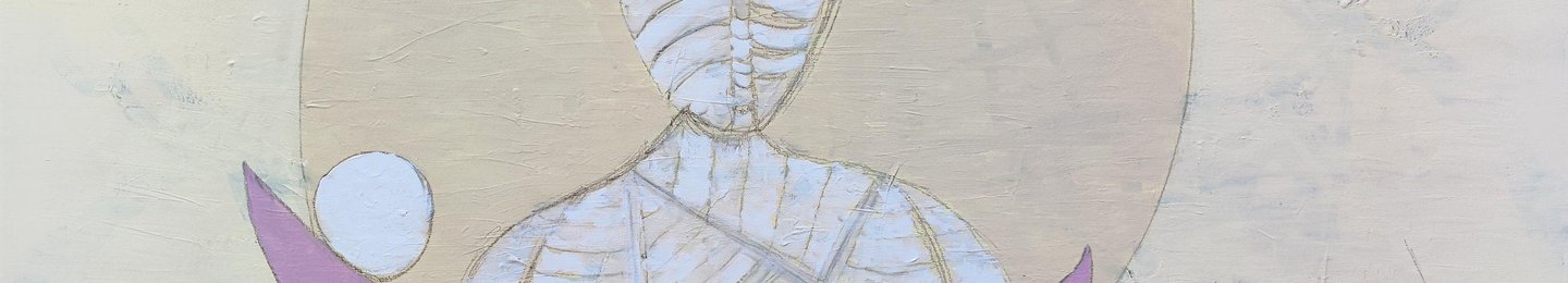 The motifs are a mixture of motifs I have worked with a lot in the past. Wings, the monk expression, horns and the impressions I collect in my life. Now I mix it up and stay in a far less colorful universe. The colors are especially important in this one. From working with color explosions for 20 years, my maturity as an artist is hitting. Now we have to keep all the "wild" behind and just let the wild grow behind the pastel-colored large area on the canvas.