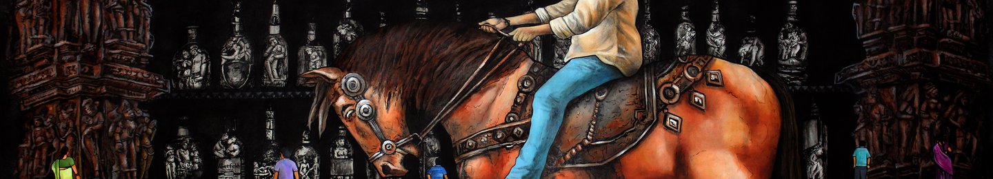GanguNaidu, born in 1987, Andhrapradesh. Presently living and working in Hyderabad, Telangana,India. Gangu works combine various techniques and media as charcoal, Indian ink, Acrylic , oil, Image transfer and wood cuts. By engaging with various media, Gangu with ease of facility translates his experiences as creative art statements. His works are empirical by nature premised on his experiences, particularly his travels to various temples of the country. Which shows temple references in Self Portrait as King-I & II series of paintings. Extremely skilled and dexterous in representing reality, Gangu strength is his drawing skills-a methodology that allows him not only to visualize complex compositions but also to render it with equal felicity. This manifest strength allows him to become a flaneur enjoying diverse subjects and themes in creating impressive body of works. Emphatically believing in his perceptions in interpreting the world that he visually enjoys. Versality in handling different media allows him to articulate any themes switching with ease from charcoal drawings to Acrylic media or mixed media.