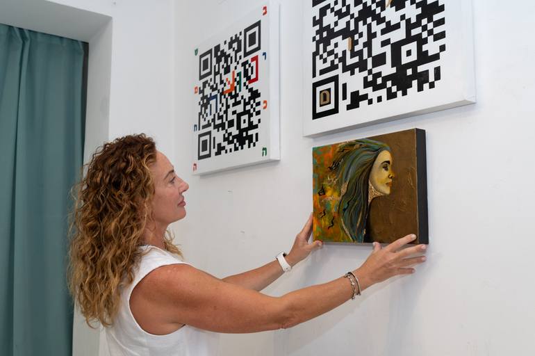 La sua ricerca si muove tra simbolo, forma e spiritualità, con un linguaggio visivo personale che unisce pittura, calligrafia e lettere dell’alfabeto ebraico.