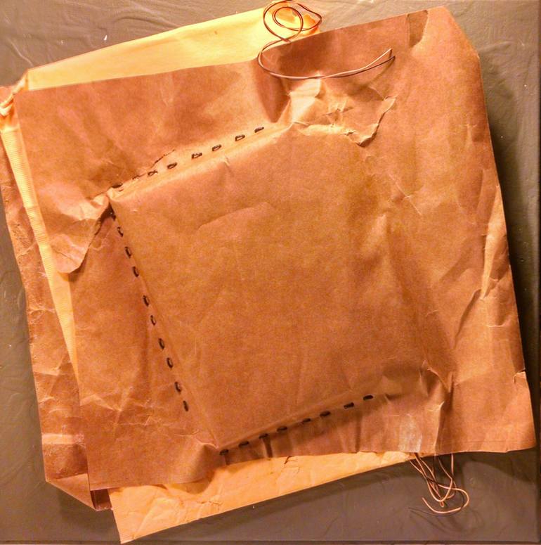 Original abstract mixed media mounted on canvas. Side edges painted dark grey, ready to hang. Part of the Earthquake Proof Series which features works created by assembling and interacting with re-purposed mixed media materials. Selected works exhibited in 2016 at 6th Street Container Alternative ...