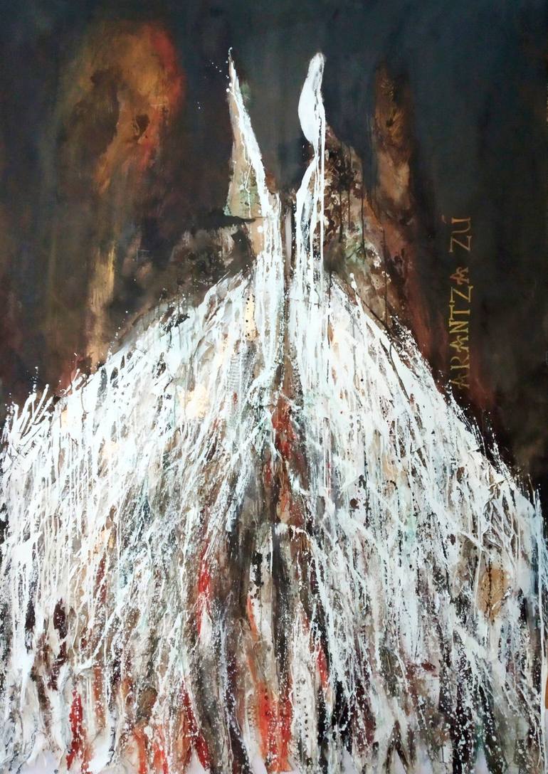 Se trata de un collage sobre lienzo sin montar en bastidor con clavos y telas. Arantza se traduce como "espino" y el sufijo "zu" que indica "abundancia". Este nombre se le da a una aparición de leyenda de la virgen. Personalmente la tomo porque creo que la belleza y la santidad también incluye zon...