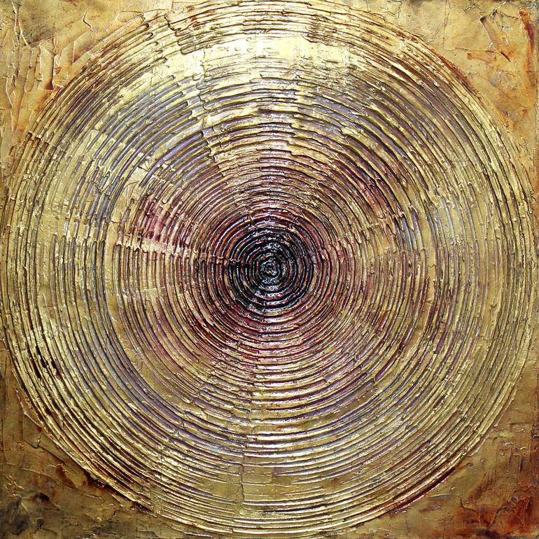 Textured painting on Canvas Gold leaf on textured gesso Circular, geometric abstract painting Gold, beige brown colours on 3D effect painting ready to hang Sides are painted Signed and stapled on the back About my art: The world we live in is made of colour. Colour is what creates beauty, energy. I...