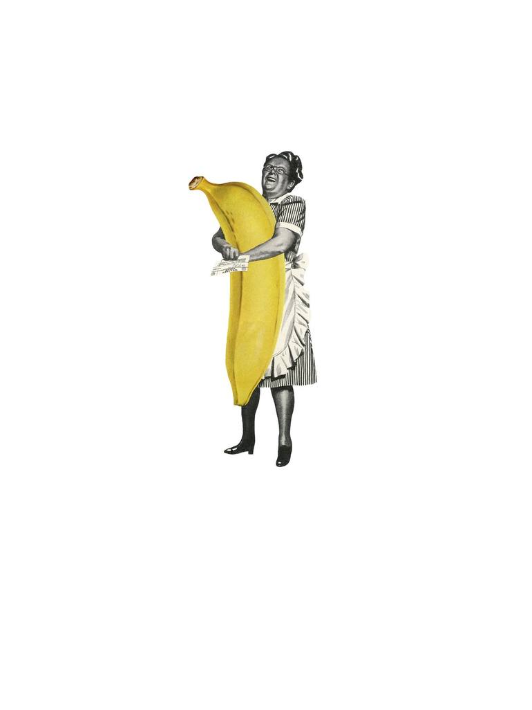 Allie Ellis uses the self-coined term “Pop Art Collage” to describe her humorous, tongue-in-cheek works on paper. Utilizing paper ephemera from the 1940’s to the 60’s, along with whatever other materials seem to strike her fancy, gives her work a distinctive and playful tone. While often the work can be seen as colorful and light, her pieces generally have a subtle melancholy undertone behind the whimsical wit. That fine line between surface joy and subsurface tension is a key moniker in many of her pieces.