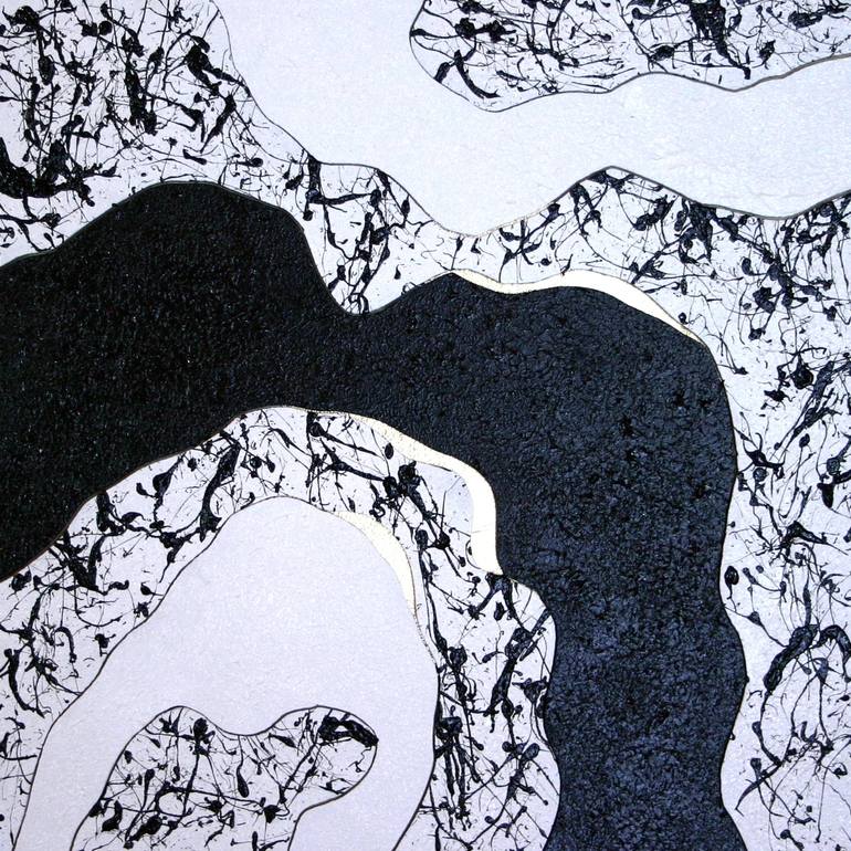 Black and white wall art. Gold gilded Abstract style painting with Black, white and gold colors that is ready to hang. Custom made natural wood frame. Overall dimensions are 12" W x 12" H x 1" deep. Painted on cradled wood panel. Sealed with gloss finish varnish. These pieces are uniquely ...