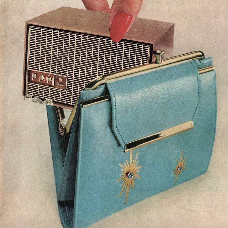 A piece featuring mid-century advertising that combines a blend of colors and design, with a non-sensical mashup.