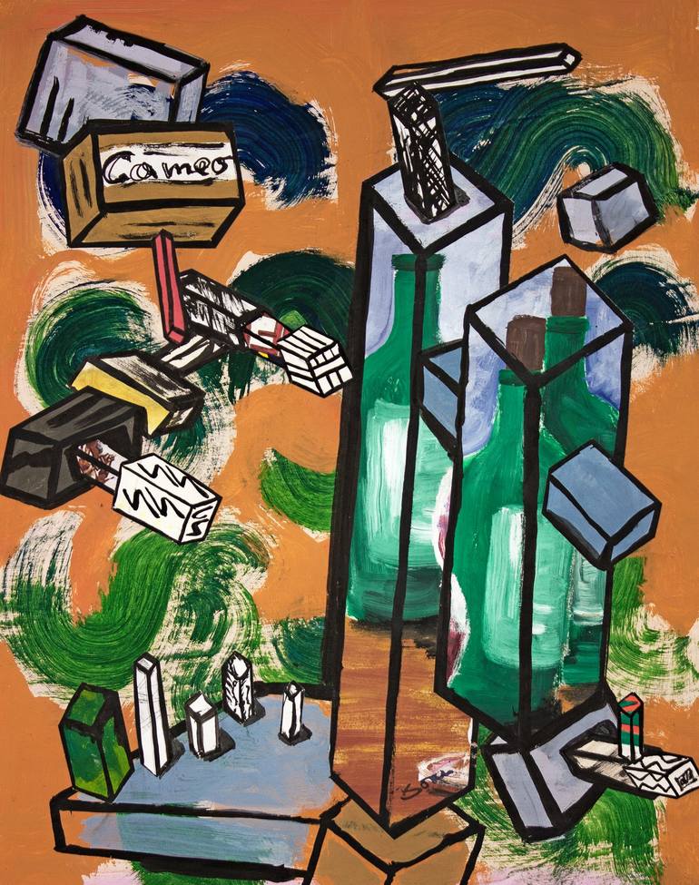 "Cameo" - Cubes, artrecyle, painting, collage, stamped at the front, signed & dated at the back. Artrecycle: collected pictures destined for the trash - this painting from people are recycled and combined with other materials in collages, montages, installations.