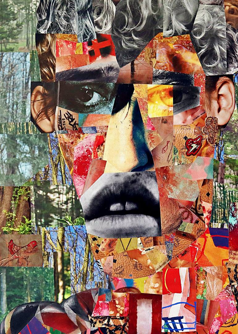 This is a diptych painting. At the back, there is another portrait. The piece of art is called " Between two souls ", and this one is the first one.